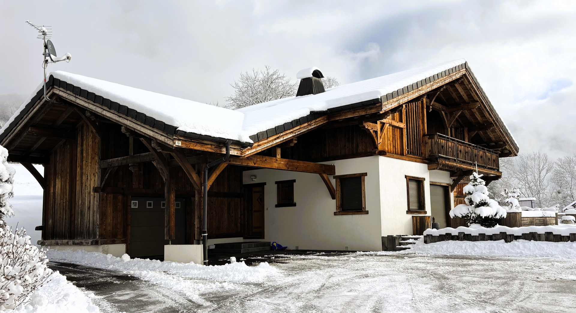 En entrant dans le chalet, vous arriverez sur un grand salon avec une belle cuisine americaine. Se trouvent également au RDC des toilettes communes, une chambre double (lit 160 cm) avec sa salle de bain attenante, une buanderie et un gararge.